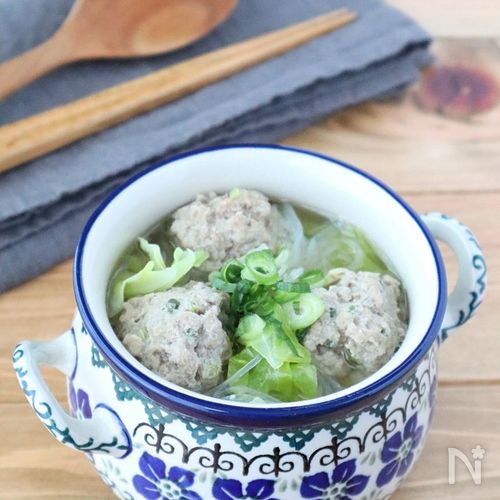 \レンジでチンするだけ『コンソメ春雨スープ』 ---------材料 ※1人前 ■ウインナー 2本 ■キャベツ 1枚 ■春雨 20g■塩こしょう 適量A 水 250mlA コンソメ 小さじ1作り方①スープカップに春雨を入れ、キャベツとウインナーを食べやすい大きさにちぎって入れる。 A も加えたら、ふんわりとラップをかけて600wのレンジで3分加熱する。🔴ポイント。