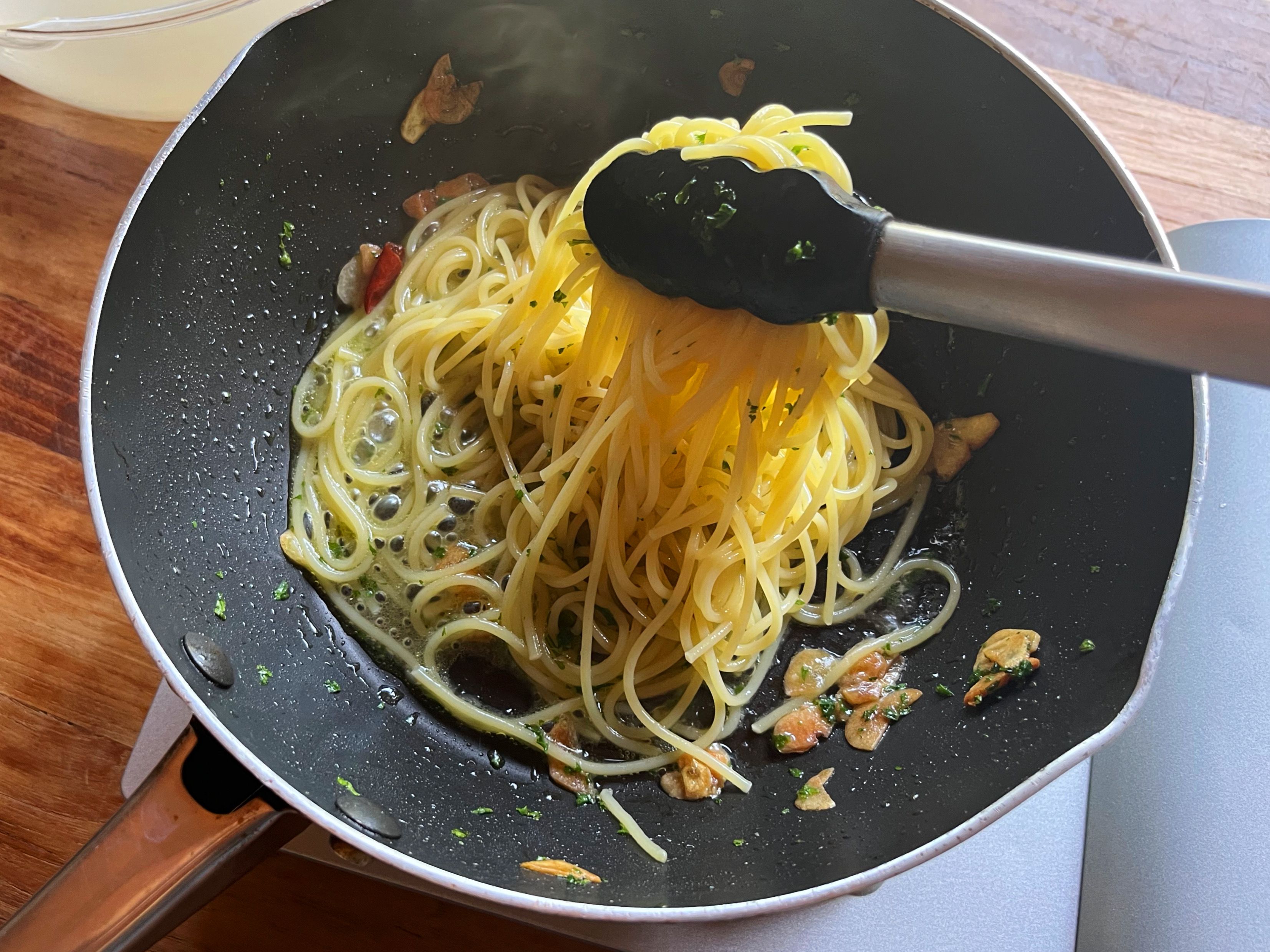 フライパン1つ プロが教える絶品『アサリのペペロンチーノ』の作り方 簡単レシピ。