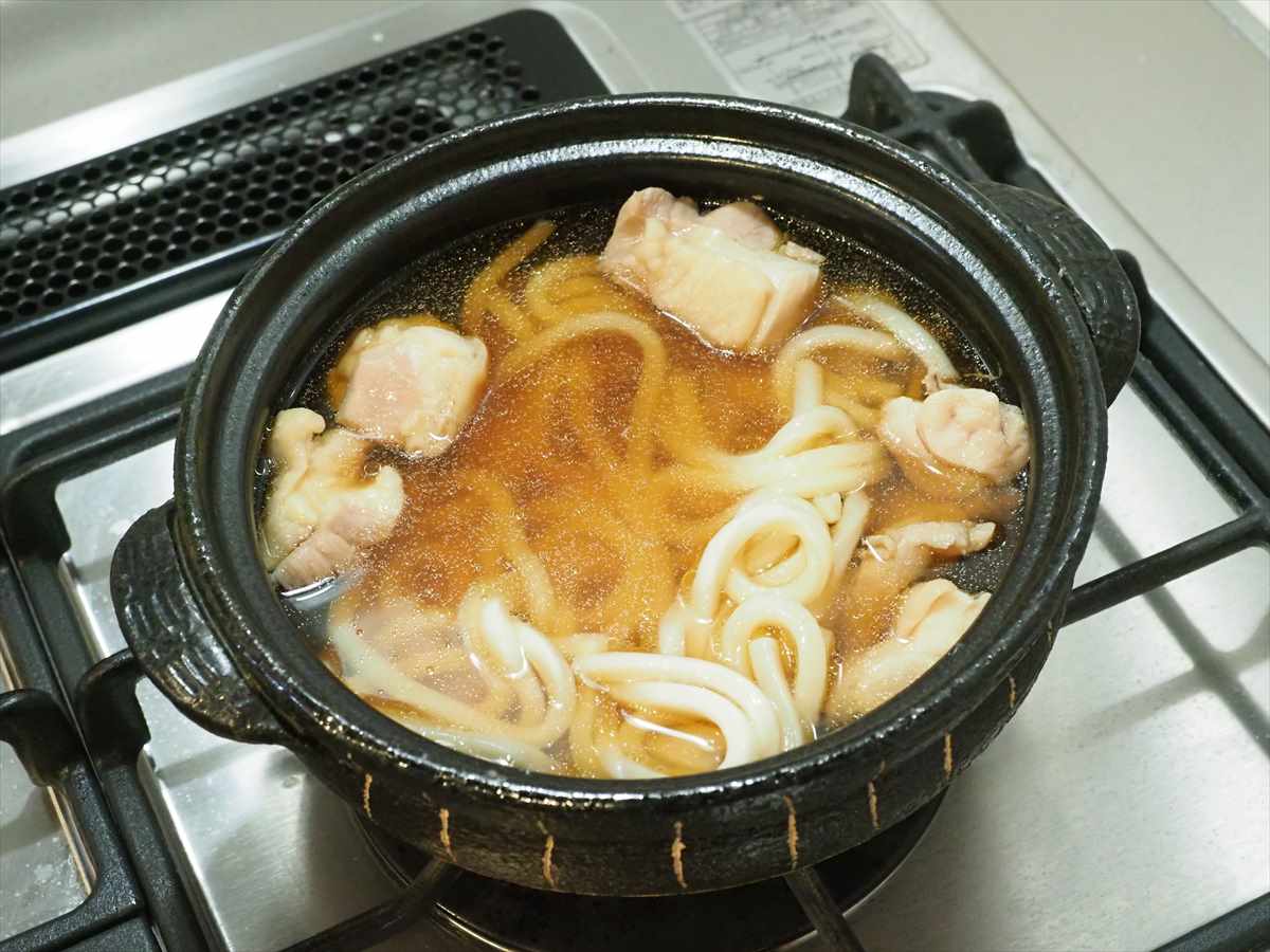 鍋焼きうどん□材料 1人分・冷凍うどん 1玉 ・鶏もも肉 70g ・卵 1個 ・長ネギ 1 2本 ・しいたけ 1個 ・油揚げ 1 2枚・かまぼこ 3枚 ・水 350ml ・醤油 大さじ1.5 ・みりん 大さじ1 ・砂糖 小さじ1 2 ・だしの素 小さじ1 2 ・塩 小さじ1 4・塩胡椒 適量 □作り方。