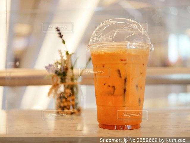 タイスタイル アイス ピンクの甘いミルクは藁の上にコーヒー ショップやカフェ レストラン白い椅子と植物の緑の背景のぼかしで木のテーブルにガラスの甘い赤い水ドリンクミルク飲み物ミックスの写真素材・画像素材 Image 86871295。