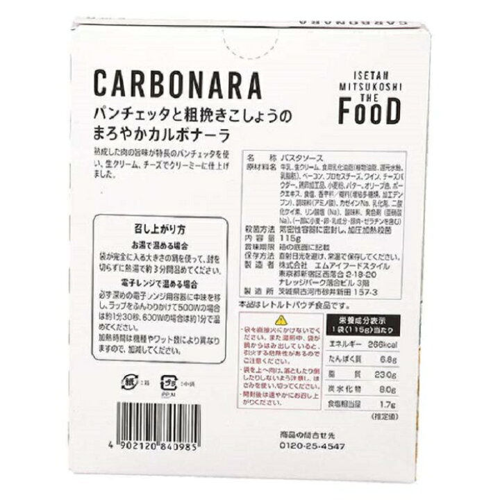 Amazonクイーンズ伊勢丹 パンチェッタと粗挽きこしょうのまろやかカルボナーラ 115g×4個MITSUKOSHI ISETAN THEFOOD ミツコシ イセタン ザ フードインスタントごはん 通販。