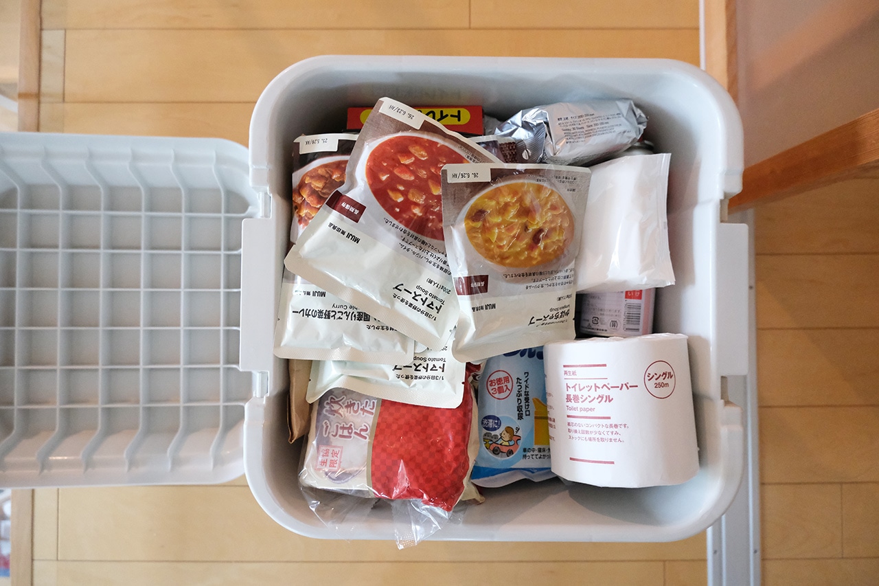 非常食の収納場所は?収納方法のポイント、無印ボックスもご紹介。