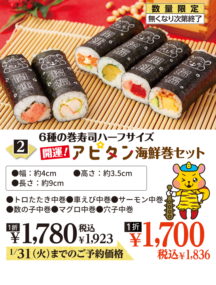 魚優 節分開運恵方巻 1 31 火 までご予約承り中「まいにちの暮らしに安心・品質・お手頃感を」 アピタ・ピアゴ。