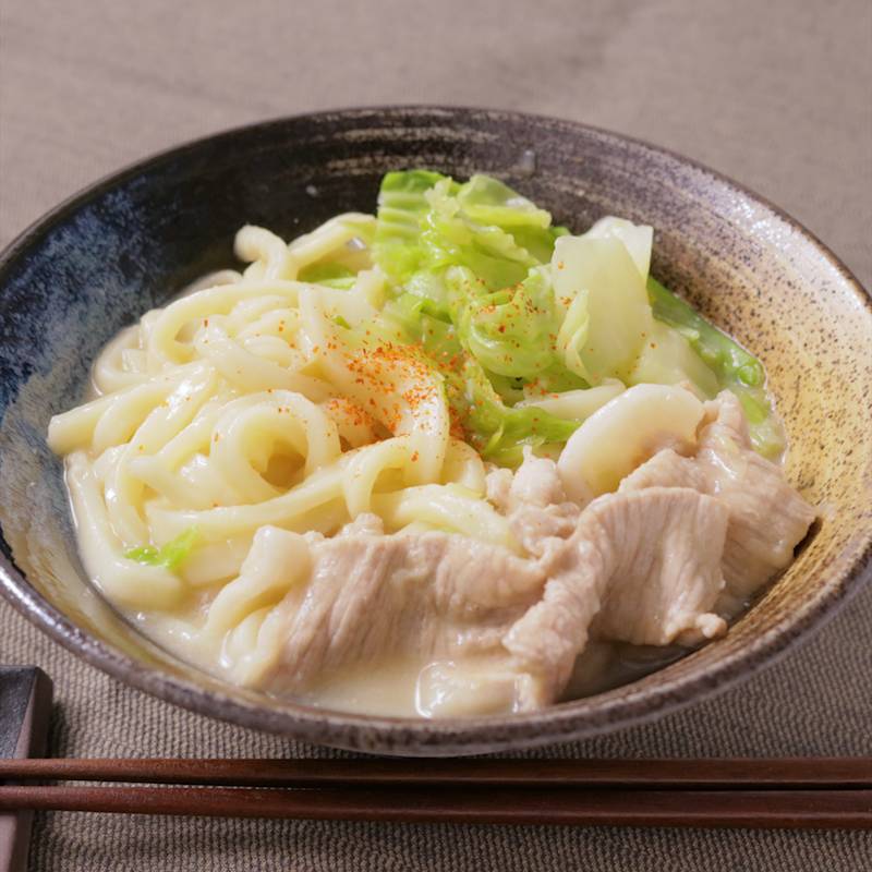 20分で完成!時短献立♪ 豚こまと白菜の味噌煮込み風うどん。