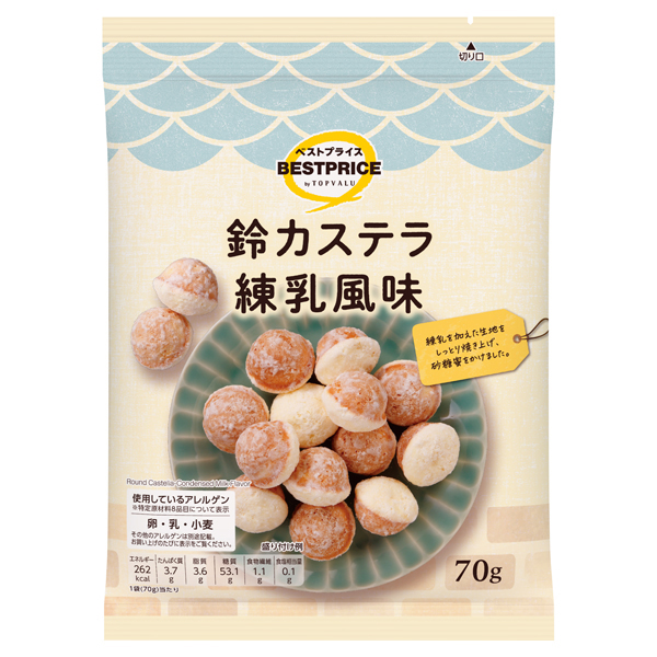 ウエルシア鈴カステラ 練乳風味 -イオンのプライベートブランド TOPVALU トップバリュ- イオンのプライベートブランドTOPVALU トップバリュ。