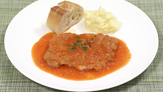 鶏肉の赤ワインビネガー煮込み マッシュスイートポテト添えきちんとレシピフードソムリエ。