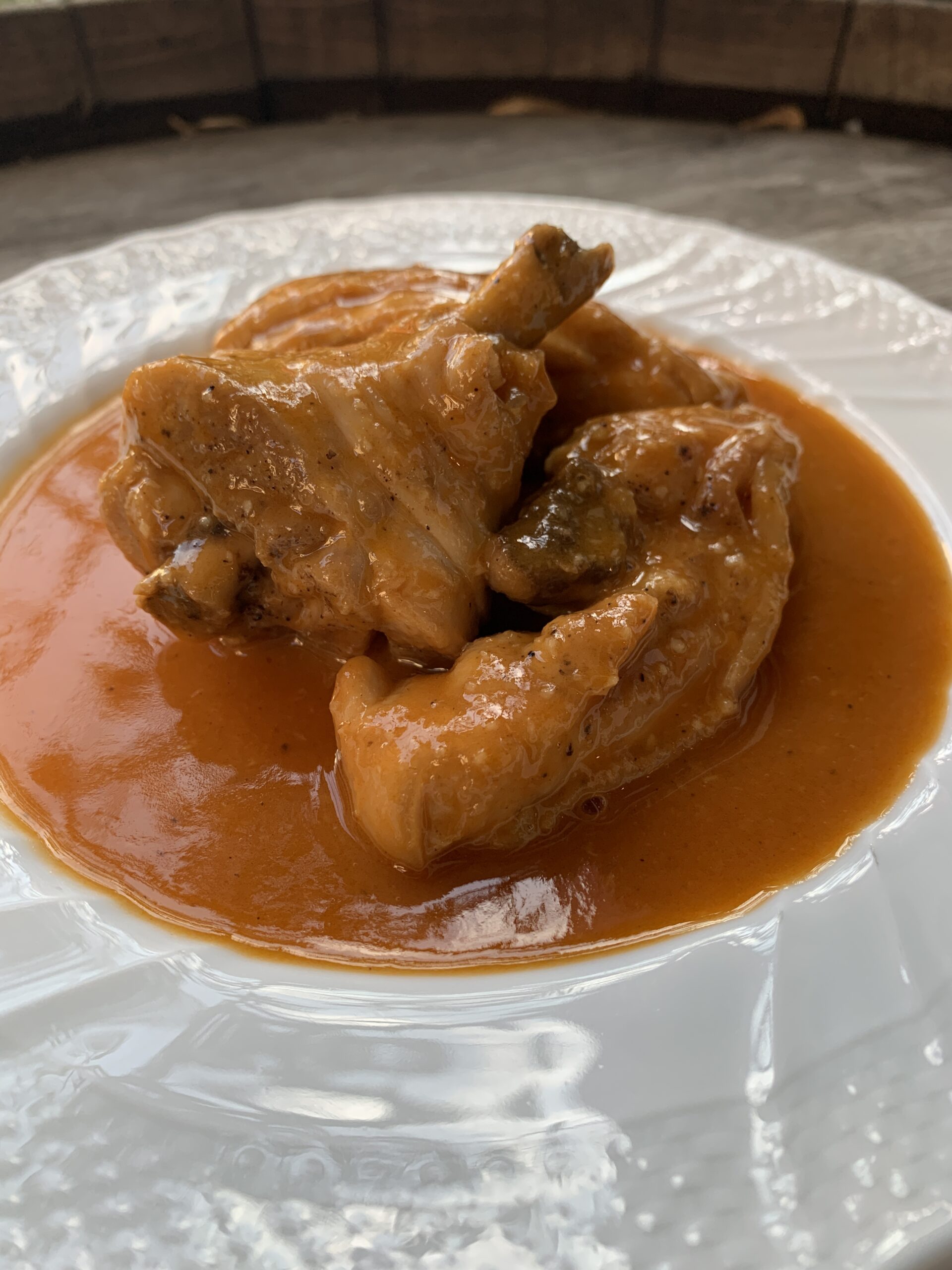 鶏手羽元肉の赤ワインビネガー煮込み : ハーモニークラブ・クッキングサロン。