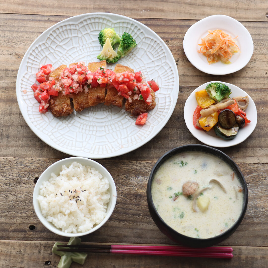 とんかつの献立にもう一品プラス。副菜や汁物でバランスの良い食卓にしようfolk。