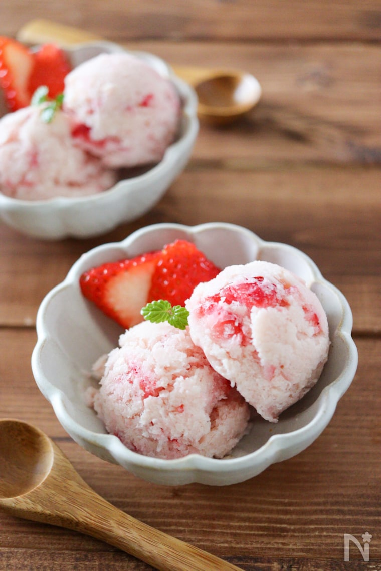 旬レシピ 果実のジューシーさをひんやりスイーツで味わおう。「夏いちごアイス」の作り方Sheage シェアージュ。