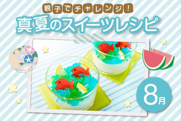 8月号 夏休みに挑戦したい!親子で作る、夏にぴったり!涼しい「スイーツレシピ」絵本ナビスタイル。