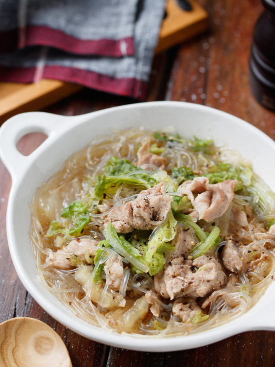 しょうがたっぷり♪「豚こまと白菜の中華風春雨スープ」。
