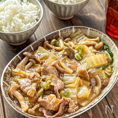 飽きない美味しさ♡豚こまと白菜のとろ〜り旨塩炒め煮。