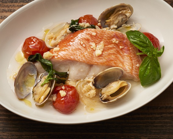 鯛と春野菜のアクアパッツァ。