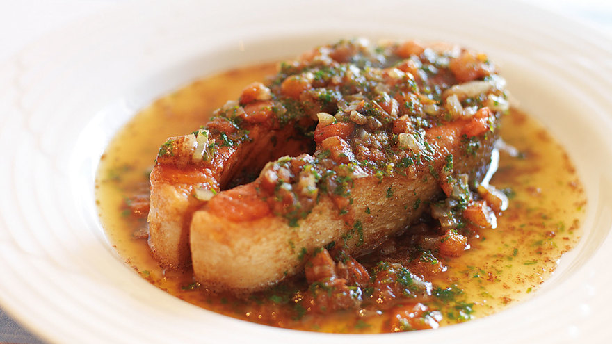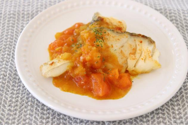 トマトソースが美味しい! スズキのムニエル。