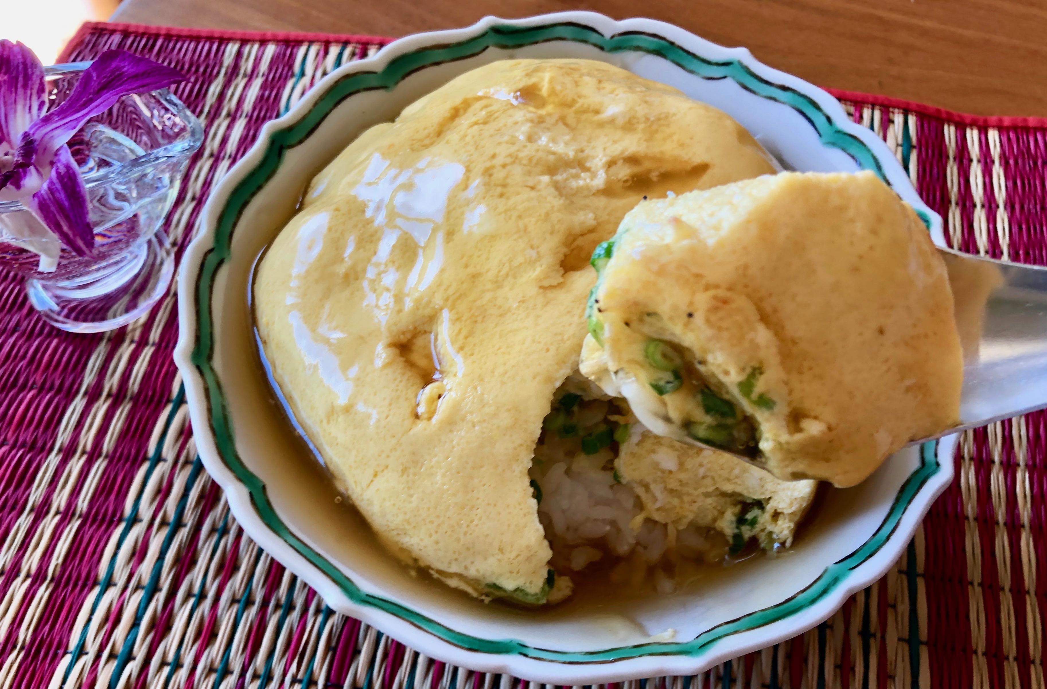 簡単 かに入りふわとろ卵の丼「天津飯」プロのレシピ。あんはなし、ごま香る台湾風です!三越伊勢丹の食メディアFOODIE フーディー。