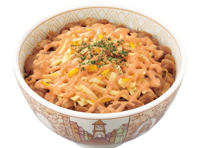 すき家から「明太マヨチーズ牛丼」が新登場!春らしい色合い、ちょっぴり刺激的な味わいの新商品です -新商品・新発売情報 進撃のグルメ。