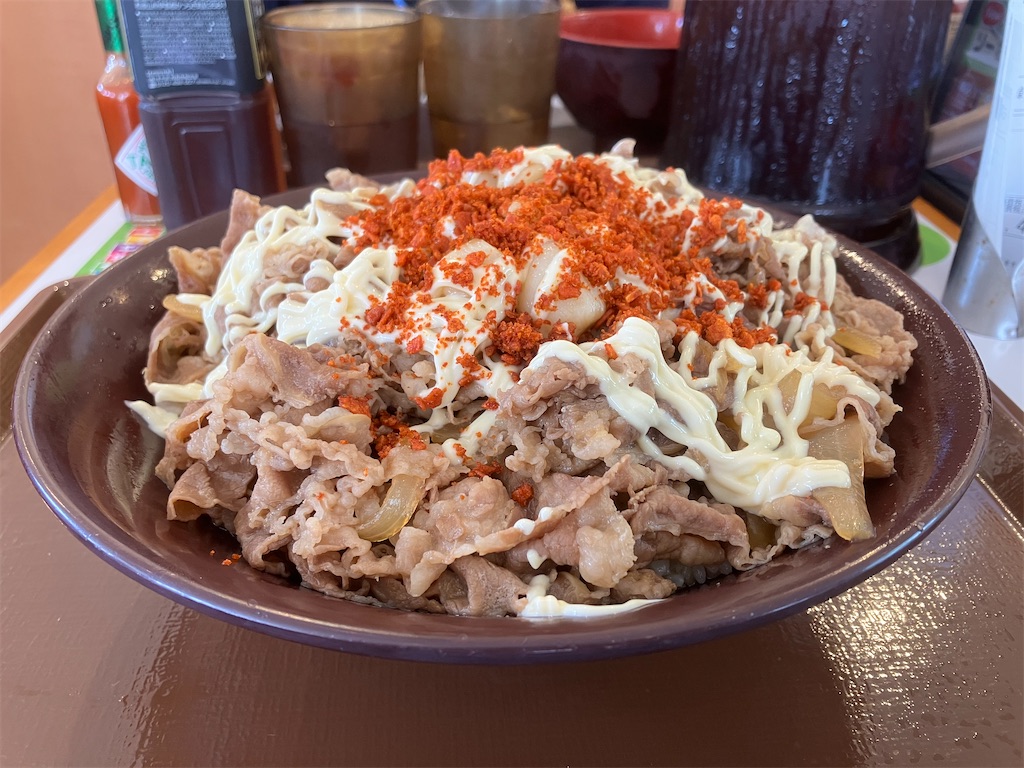 インパクト大!マヨにんにくファイヤー牛丼 すき家新商品まったりおきなわ。