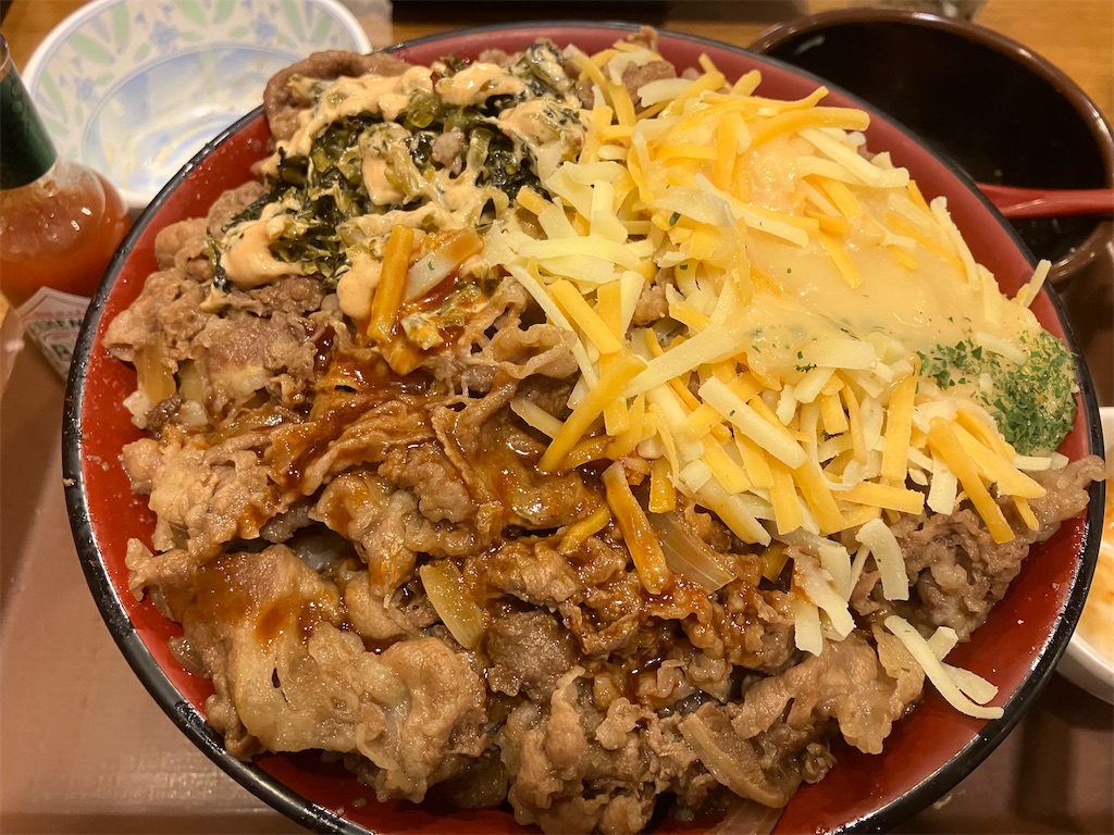 シリーズ最終回 すき家 ボーノ相模大野店〜牛丼キング コチュジャン 3種のとろ〜りチーズ 高菜明太マヨ トッピング牛丼 総重量1キロ超え デカ盛り〜- 又二郎の大食い&デカ盛り&ラーメン日記。
