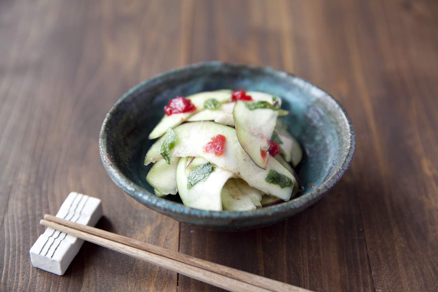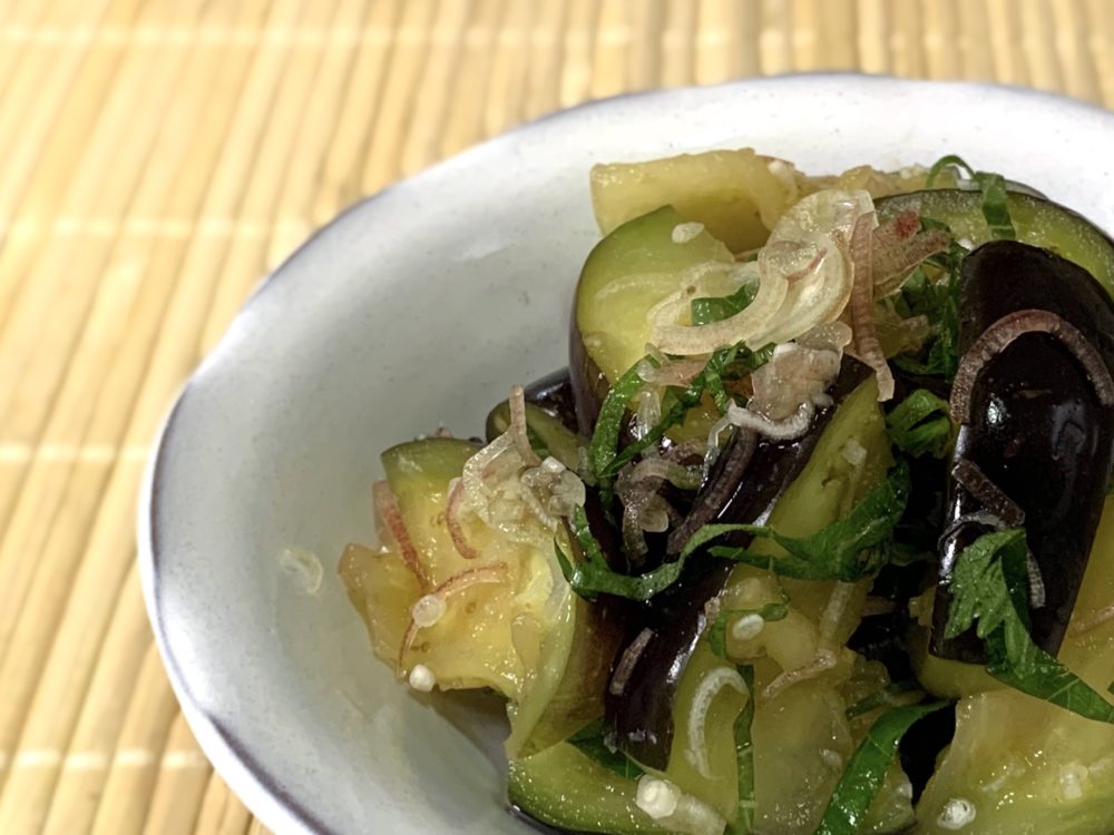 水ナスの塩だれサラダレシピ – ミルで作る自家製ドレッシング – Tomoe-Ya。