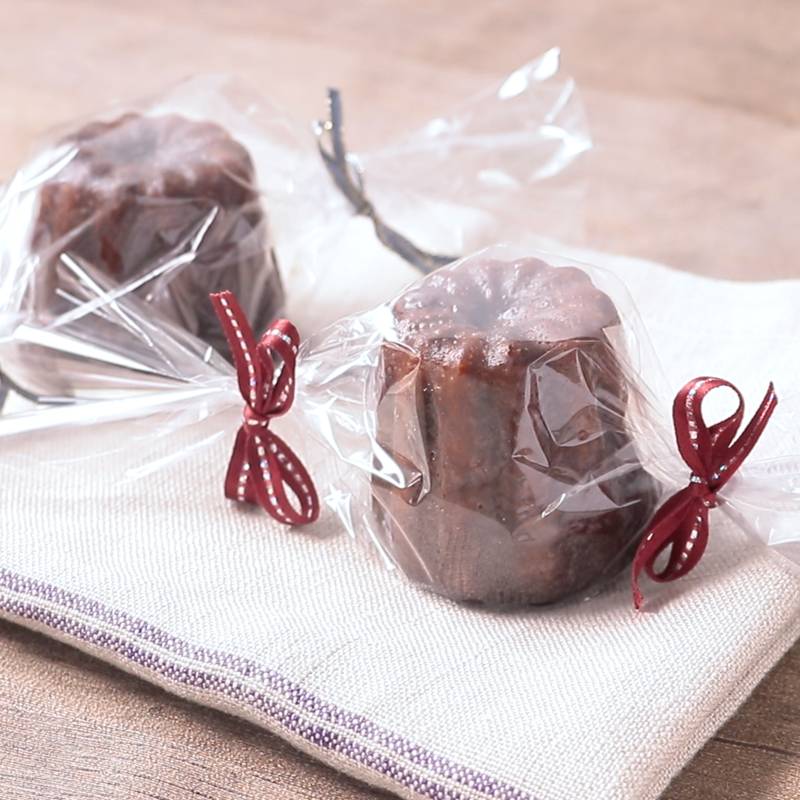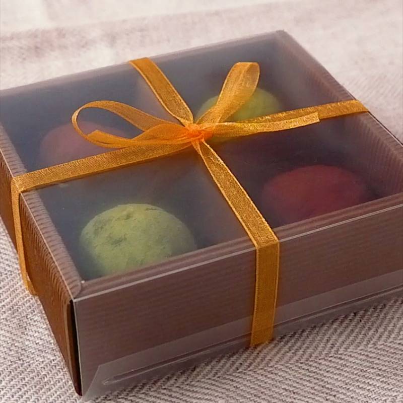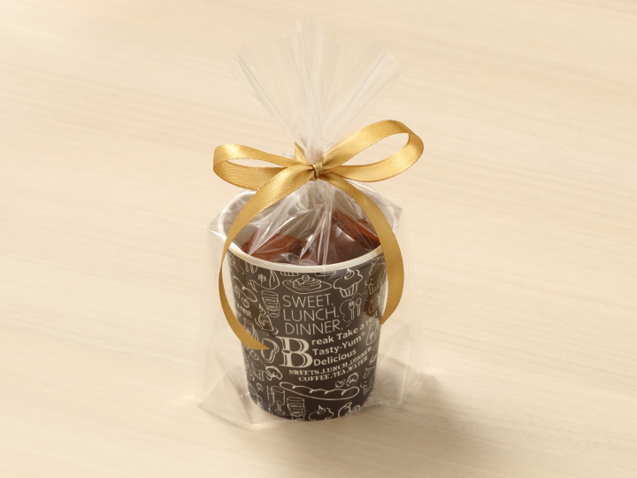 クリアケースに入れたカフェオレ生チョコのラッピングラッピング富澤商店。