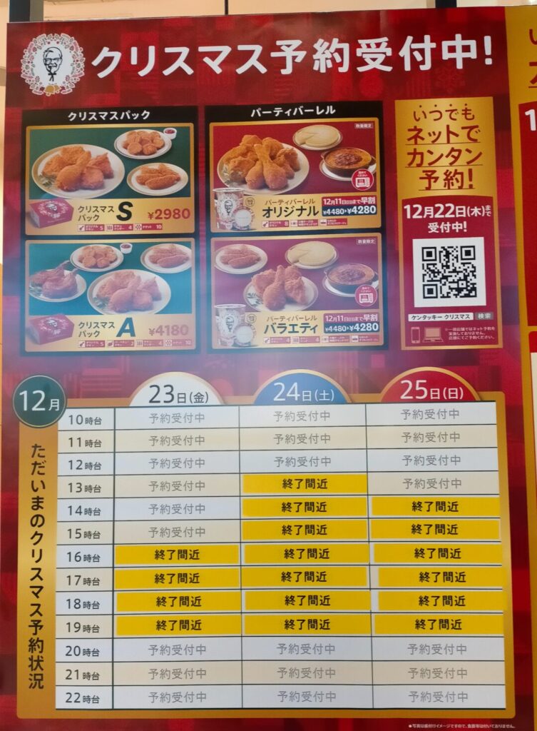 ケンタッキーはクリスマスに予約なしで買える? 2024 当日販売があるか紹介。