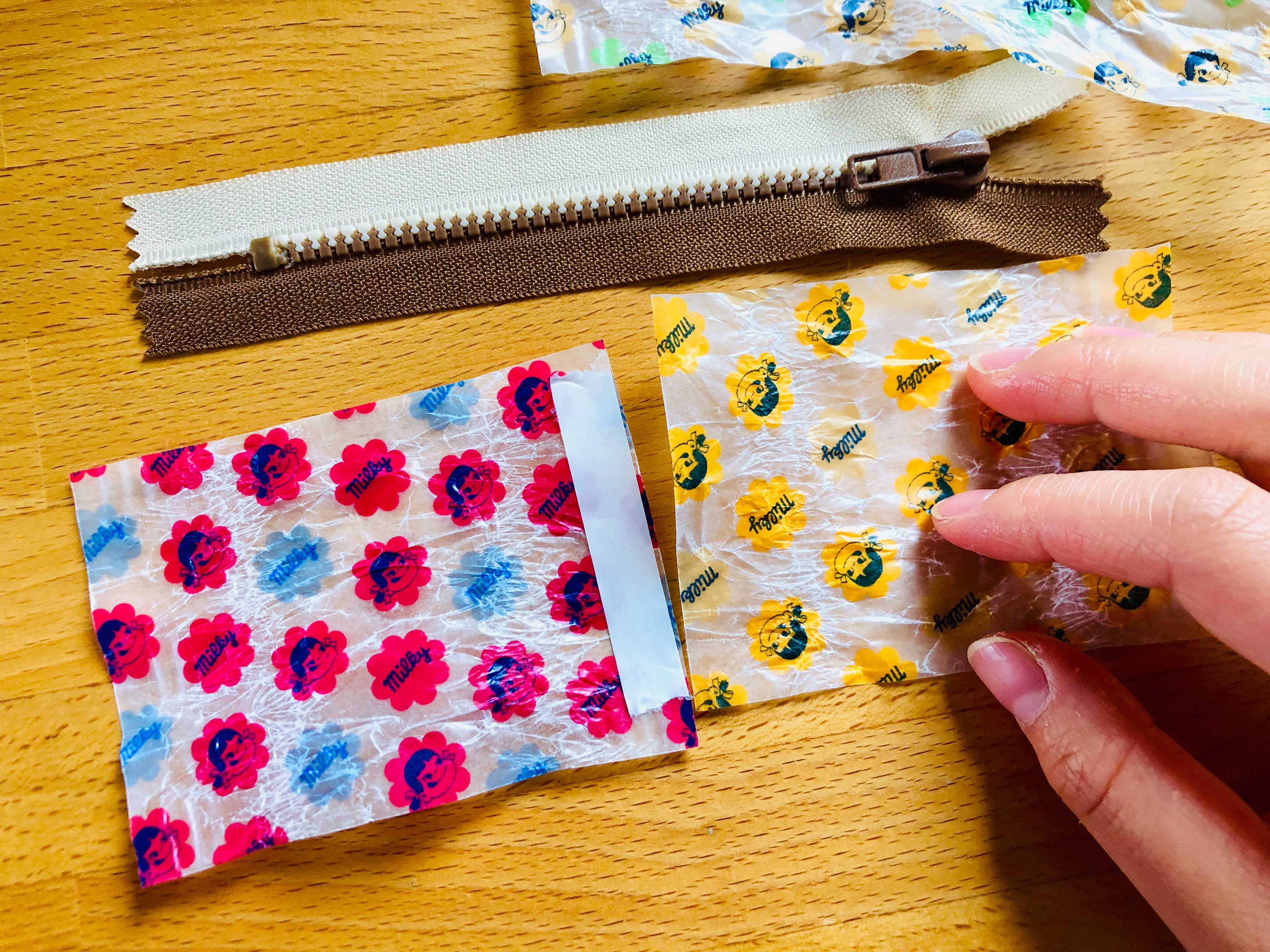 お菓子の袋をラミネート!かわいいポーチにアップサイクル。