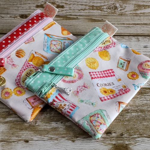 防水・ラミネート お菓子パーティー柄 2段フラットポーチ 裏面ポケット付き 3色展開 ポーチ blueberry 通販12919096Creema クリーマ。