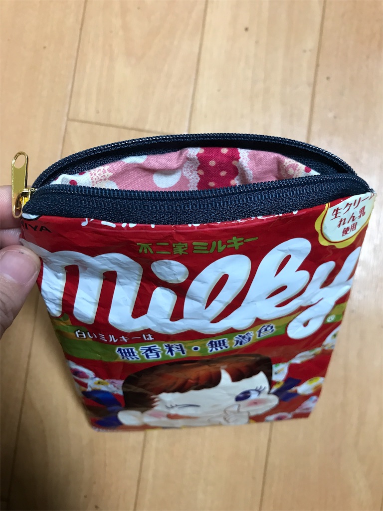 ミルキーの袋と100均の材料で、おかしな「お菓子」ポーチ作ってみた!おいしい紙のアートとビーズ やぎ~ぬ工房。