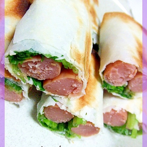 魚焼きグリルでウィンナーの春巻き。