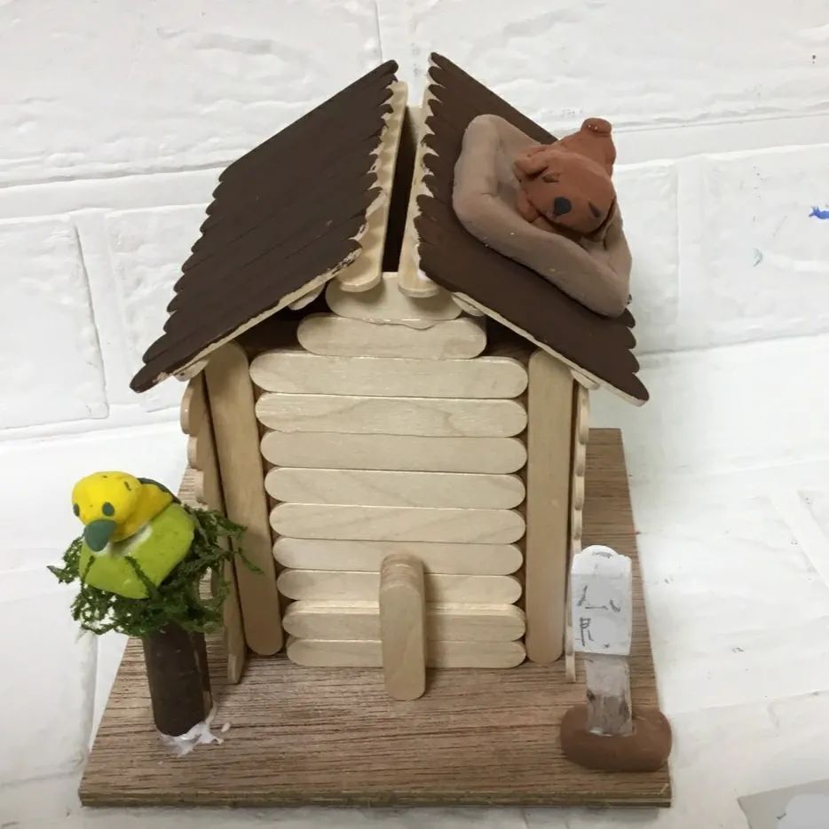 アイスの棒でつくるログハウス工作!大阪の絵画教室・お絵描き教室モネスク。