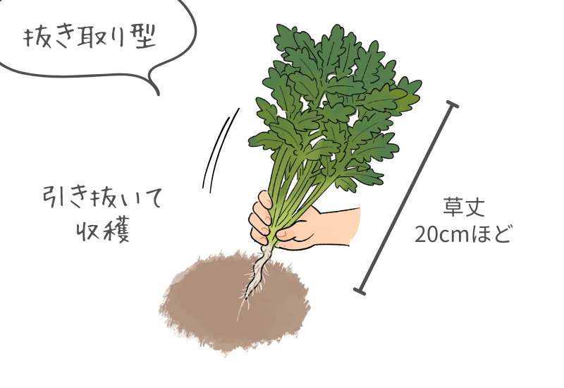 シュンギクイラスト家庭菜園調べるタキイ種苗株式会社。