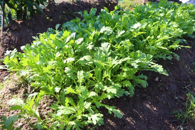 家庭菜園や農園の春菊栽培で長く収穫を続けるコツ!脇芽の上手な伸ばし方と春菊の育て方! 農家直伝。