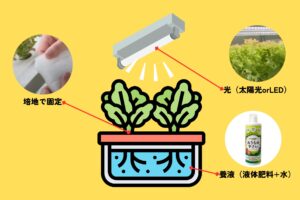 室内で春菊を育てる水耕栽培の方法。