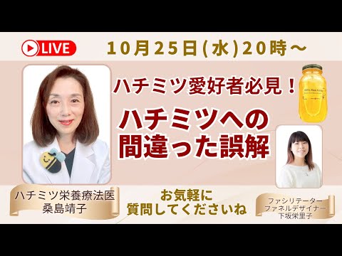 1月17日 水 20時〜 ハチミツ栄養療法医の桑島靖子先生 内科医、漢方専門医 がYouTubeライブ配信します😊🐝毎月恒例のライブ配信ではたくさんの質問がきます🍯楽しいですよ✨ 糖代謝🆙✨で元気な体えりやん。