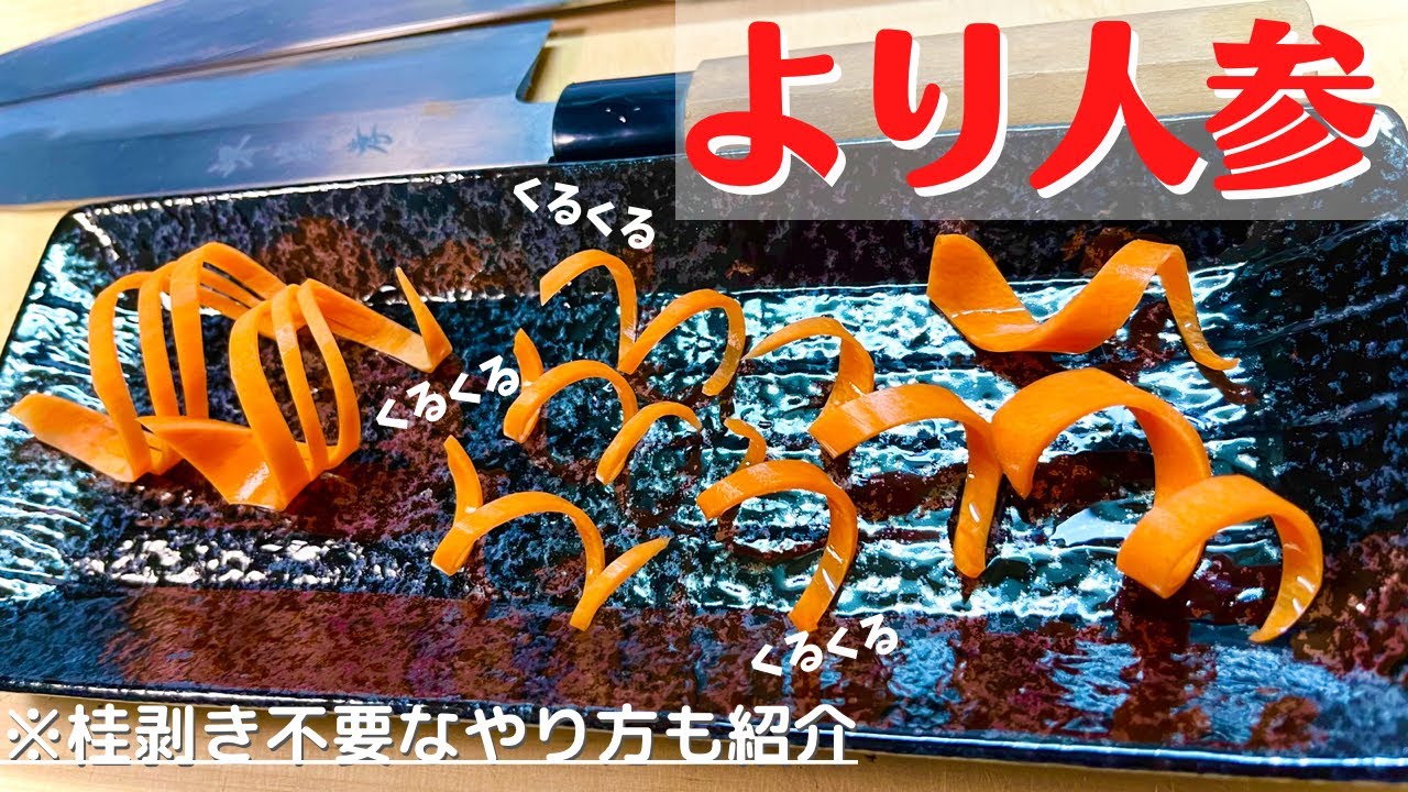 刺身に添える「より人参」の作り方簡単で美しい飾り切りテクニック - YouTube。