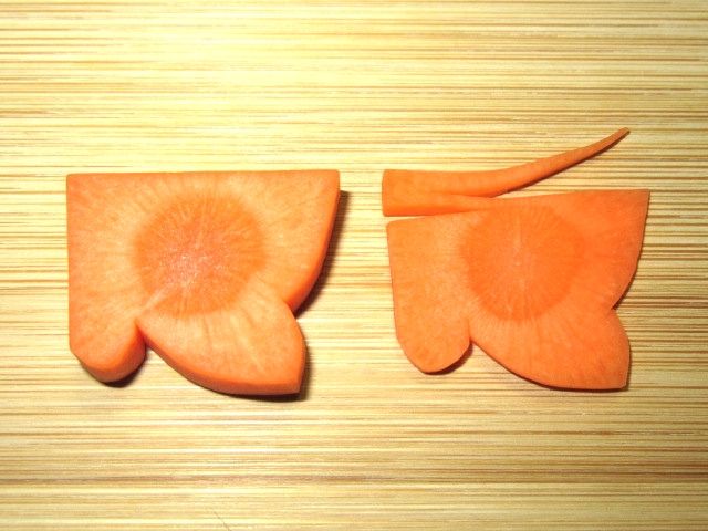 蝶々人参の詳しい切り方 飾り切り手順とコツ 春の料理演出方法日本料理、会席・懐石案内所。