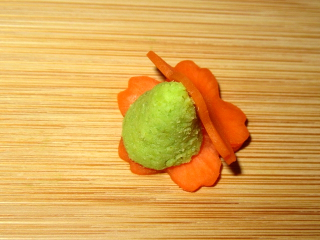 刺身の簡単な飾り切り 梅人参のわさび台の切り方とコツ日本料理、会席・懐石案内所。