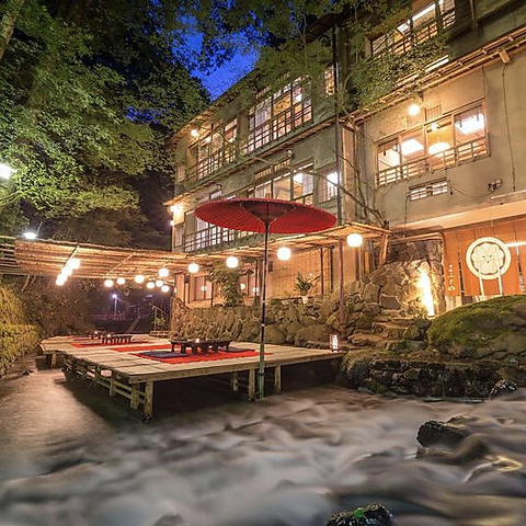 川床京都市高雄錦水亭京会席の食事貸切風呂がある料理旅館。