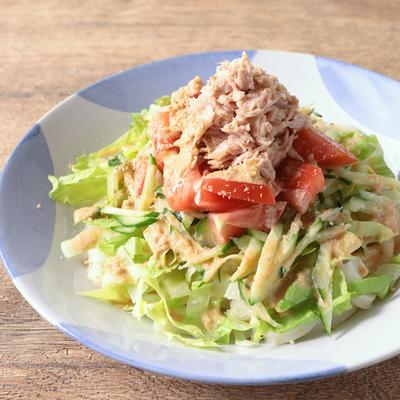 レンジでツナレタスサラダのレシピブログ簡単お手軽粉だし料理 うま味たっぷりでおいしさ満載。