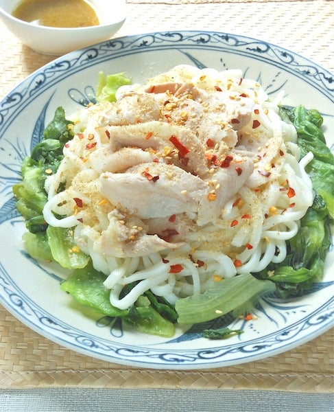 レンジで簡単!豚バラ肉とレタスのエスニック冷しゃぶうどんとくらしのアンテナ掲載レタスレシピ。野菜ソムリエakkiの シンプル・ベジフル・キッチン。