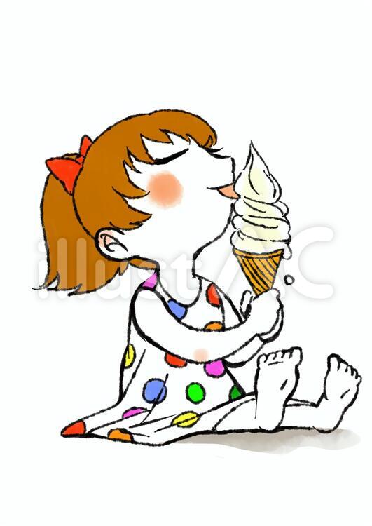 嬉しそうにアイスを食べる女の子のイラスト素材105559407- PIXTA。
