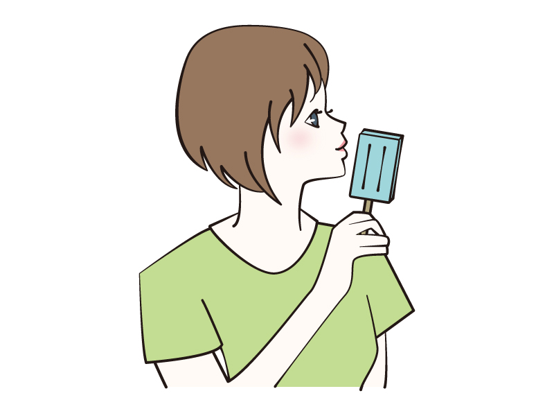 アイスバーを食べる女性のイラストイラスト無料・かわいいテンプレート。