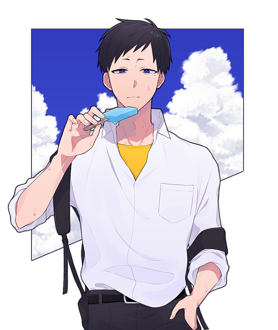 夏の暑い日にアイスを食べる若い男のイラスト素材104267302- PIXTA。