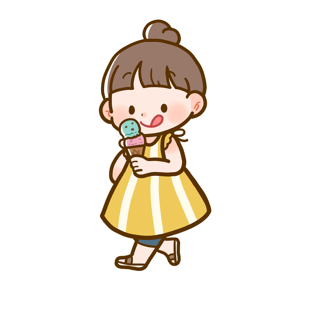 アイスクリームを食べる子供のイラスト - イラストくん。