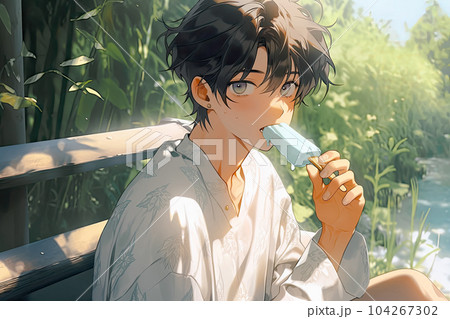 夏の暑い日にアイスを食べる若い男のイラスト素材104267303- PIXTA。