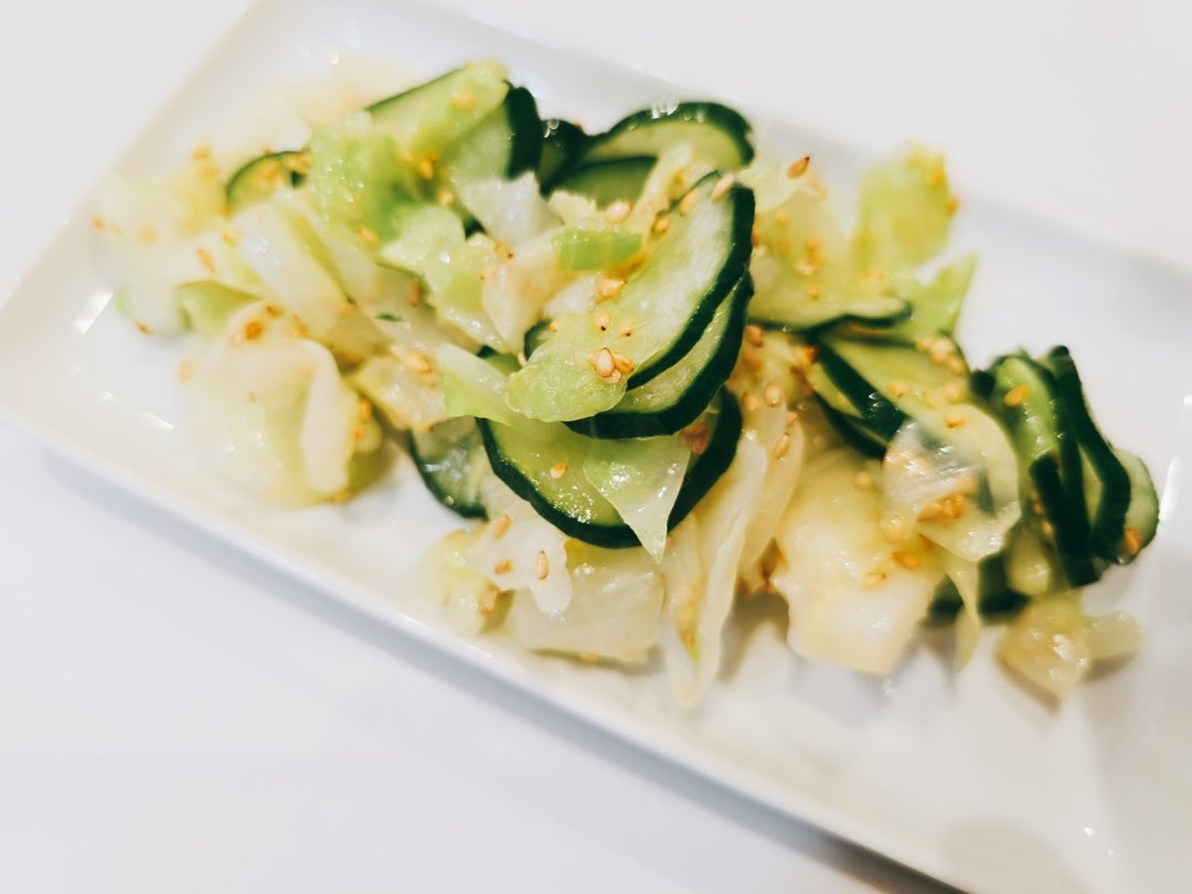 レシピ さっぱりとした味付けでヘルシー♡キャベツときゅうりのごま酢レモン。