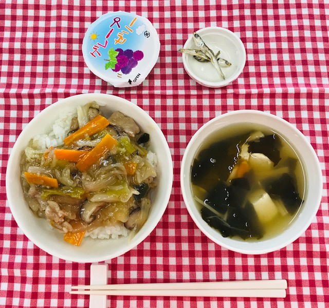今日も丼もの『中華丼』幼稚園給食学校法人幾度学園・社会福祉法人牟礼会。