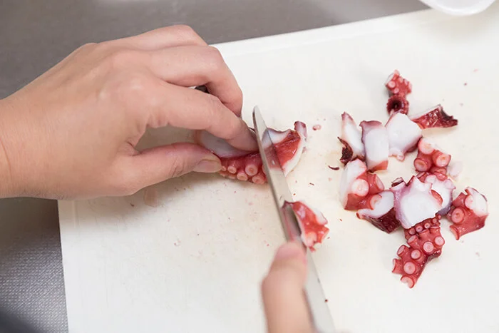 ゆでだこの切り方。