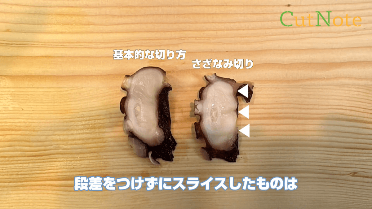 タコの刺身 削ぎ切り さざなみ切り の切り方。