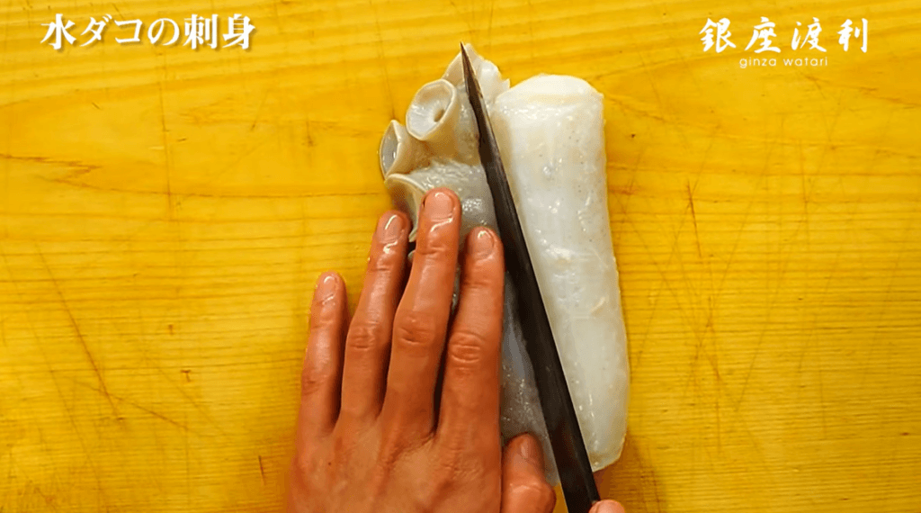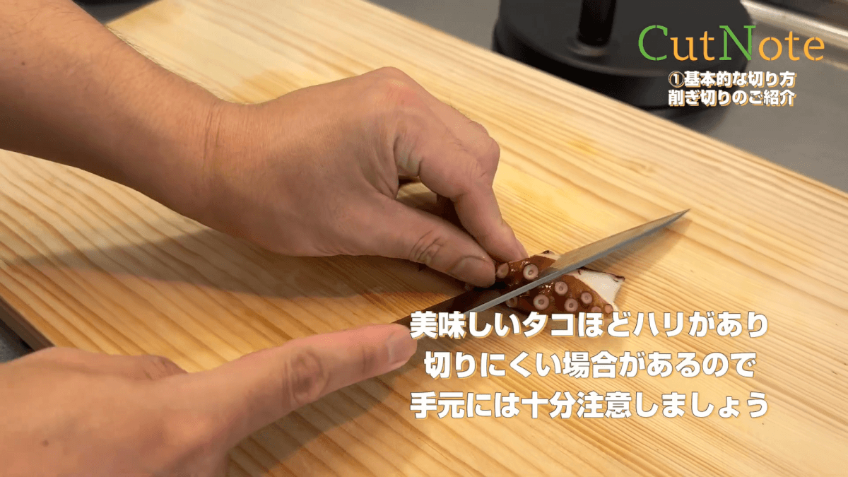 プロがレクチャー!タコの刺身の切り方 削ぎ切り さざなみ切り。